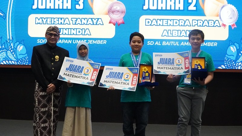 Sedangkan Kategori Matematika Juara 1: Samuel Eka Tanadi – SDK Santo Yusup, Malang, Juara 2: Danendra Praba Albianto – SD Al Baitul Amien, Jember dan Juara 3: Myeisha Tanaya Ayunindya – SD IT Harapan Ummat, Jember.